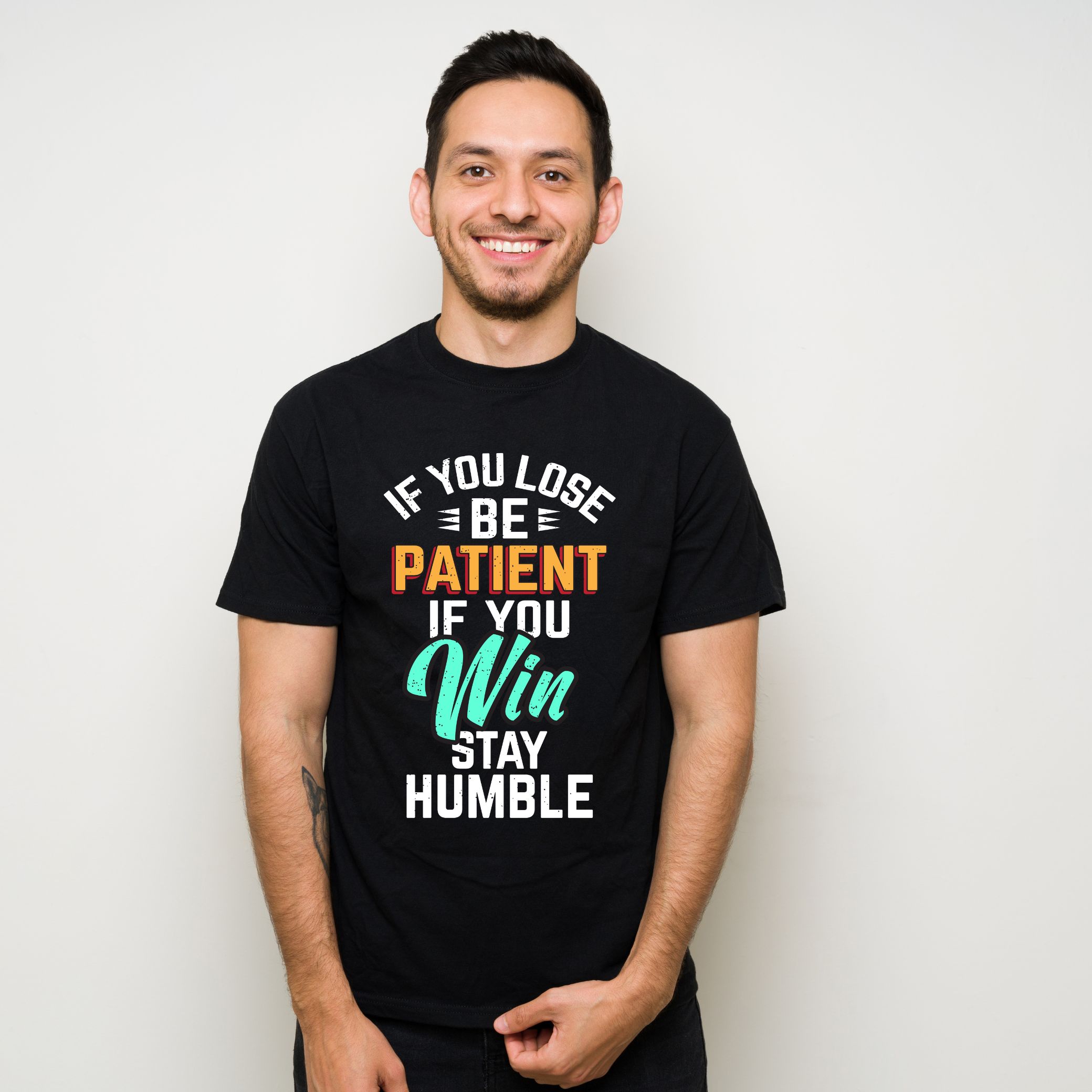 Introducing our “If You Lose Be Patient, If You Win Stay Humble” motivational quote T-shirt – a powerful reminder wrapped in a clean, bold, and modern design. This T-shirt is not just clothing; it’s a mindset, a lifestyle, and a daily boost of positivity for anyone who believes in personal growth, resilience, and staying humble through life’s highs and lows.