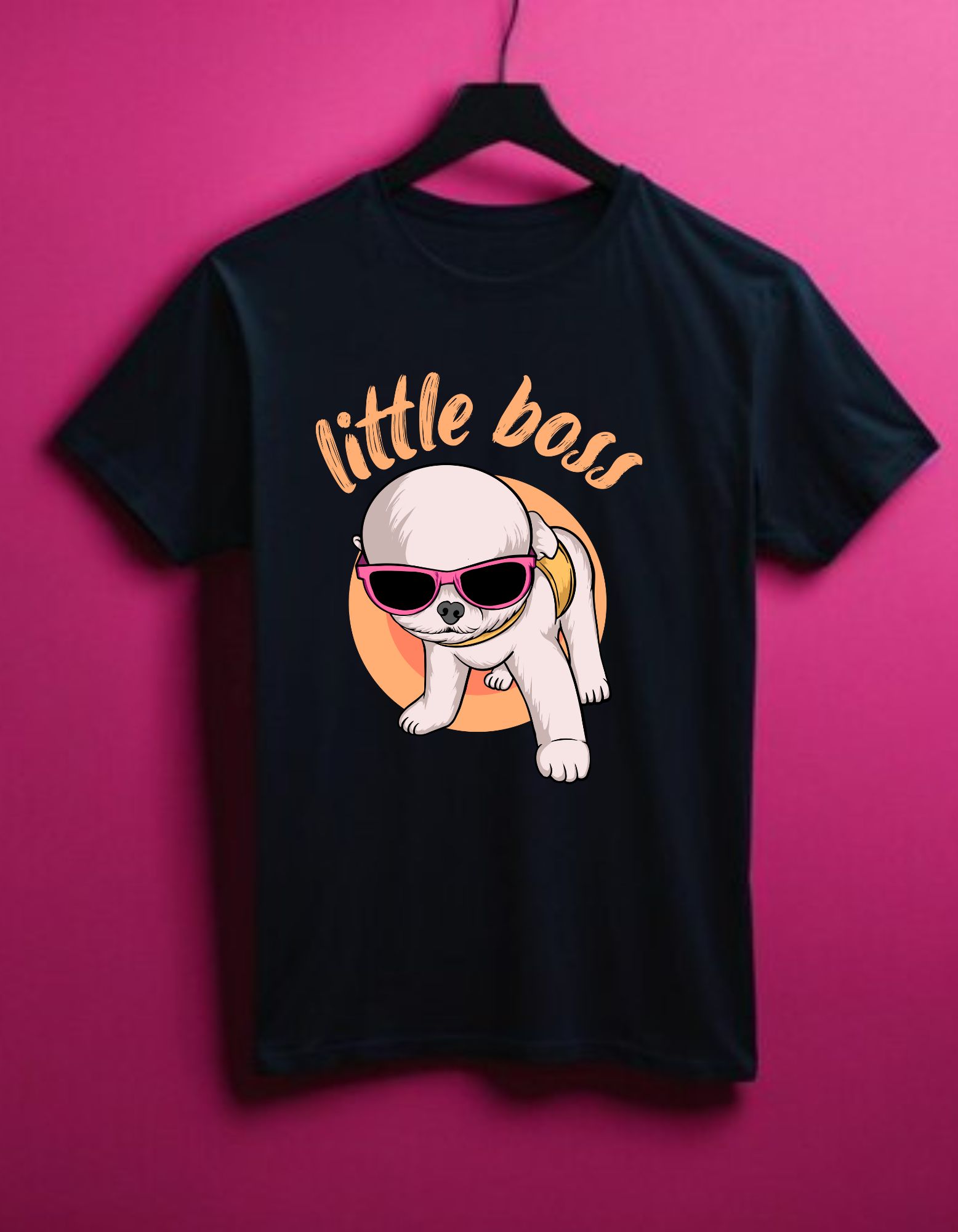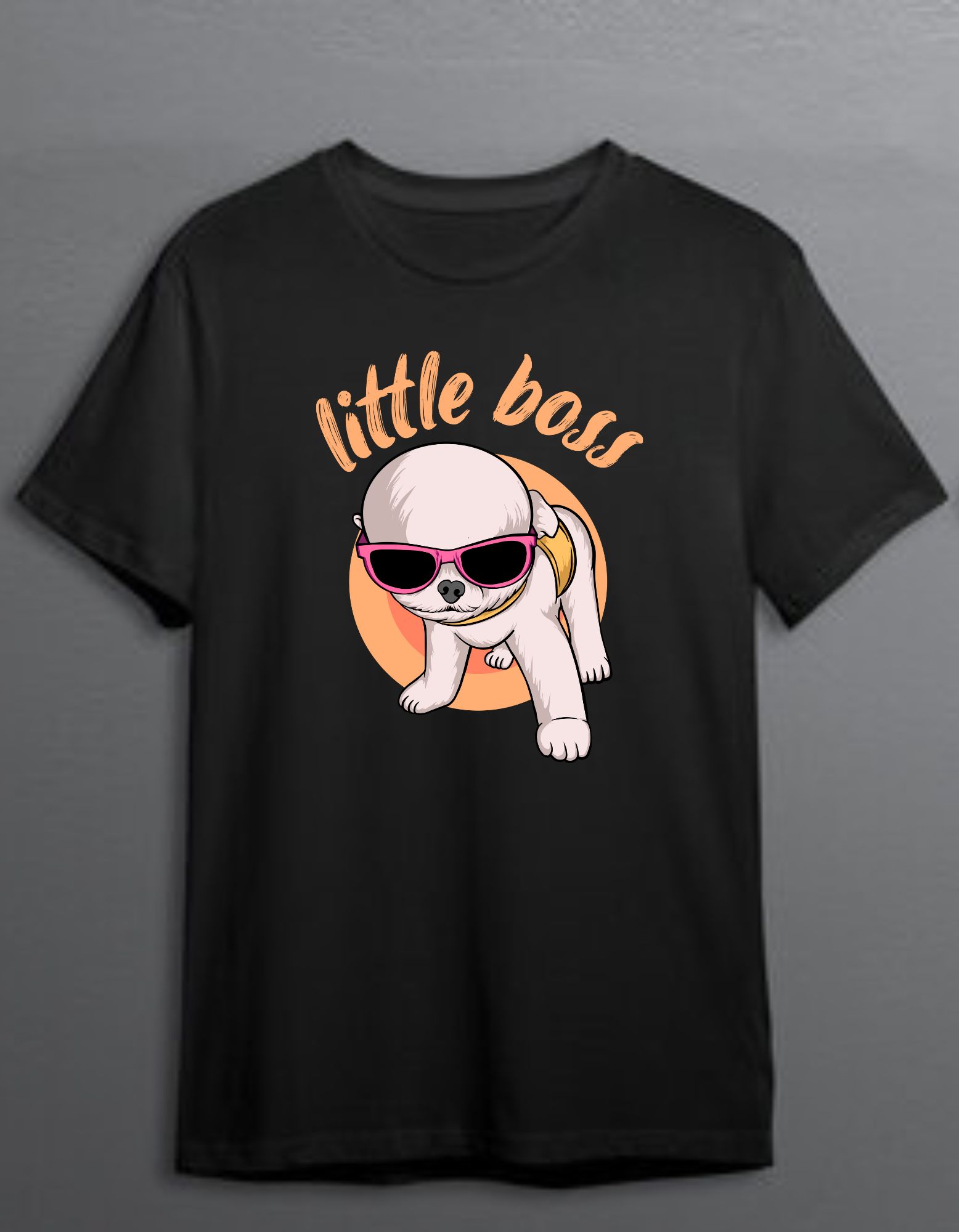 • Fun “Little Boss” dog cartoon design